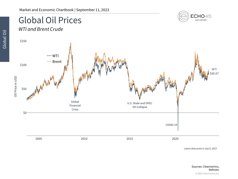 A key driver of global markets and inflation over the past two years has been the price of oil. As an important commodity that fuels the economy, investors watch the oil market closely. While oil has fallen considerably from its peak in 2022, it has also rebounded over the last few months. Since mid-June, Brent crude prices have risen over 26%, from around $72 per barrel to above $90. What do long-term investors need to know about energy prices as the inflation story evolves and the market rally continues?
